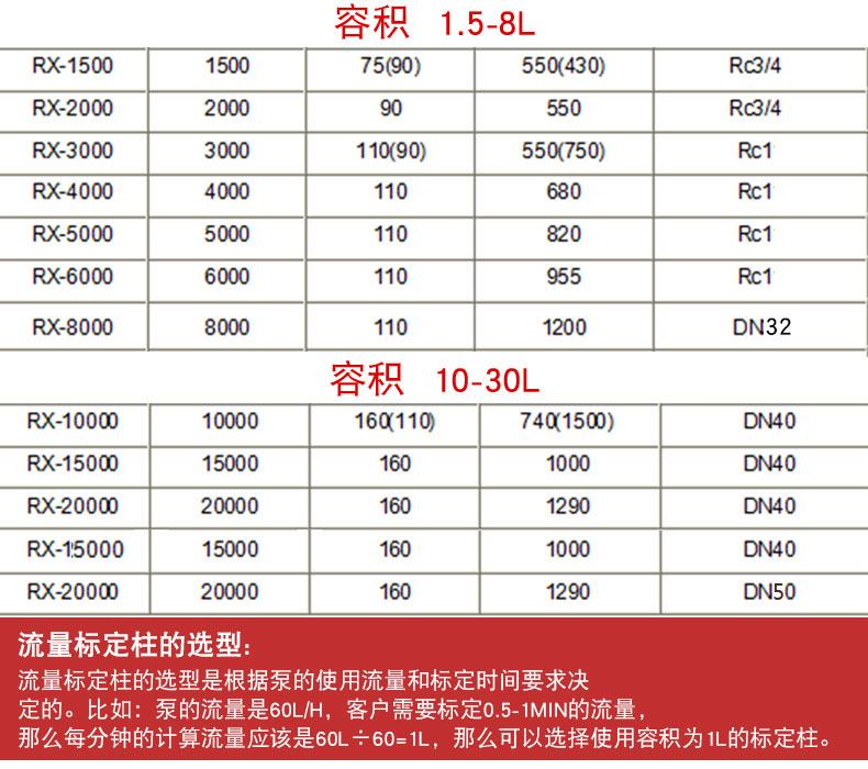 流量標定柱的選型是根據泵的使用流量和標定時間要求決